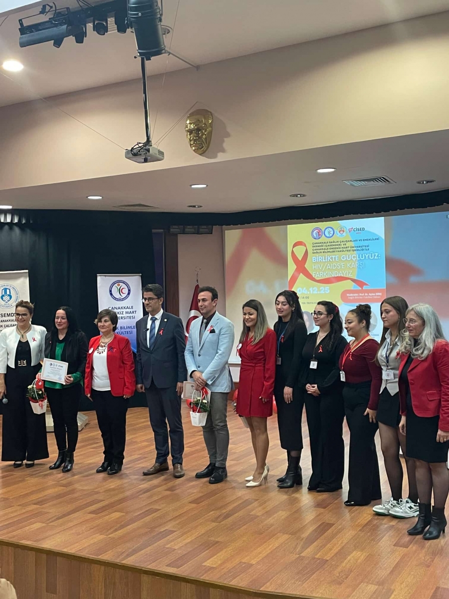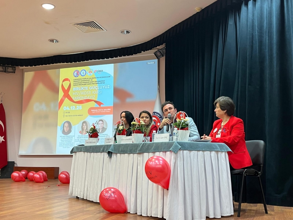 Çanakkale Onsekiz Mart Üniversitesi Sağlık Bilimleri Fakültesi ve Çanakkale Sağlık Çalışanları ve Emeklileri Derneği (ÇASEMDER) işbirliğinde "Birlikte Güçlüyüz:HIV/AIDS'e Karşı Farkındayız" paneli gerçekleştirildi. Katılımın yoğun olduğu panele ÇOMÜ Rektörü Sayın Prof. Dr. R. Cüneyt Erenoğlu, Sağlık Bilimleri Fakültesi Dekanı Sayın Prof. Dr. Ayten Dinç, ÇASEMDER Başkanı Sayın Ulviye Çalıdağ, üniversitenin akademik ve idari personelleri, dernek üyeleri ve öğrenciler katılmış olup panel ilgiyle dinlenmiştir.